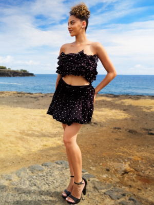 Ensemble Jupe à pois Capucine : jupe bouffante & bustier à volants – look chic et tendance