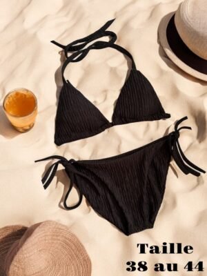 ✨ Élégance intemporelle : L’ensemble Maillot de Bain 2 pièces Noir Côtelé Zia ✨