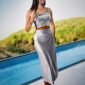 • Ensemble Jupe Courte Moulante et Top à Fines Bretelles en Matière Extensible
