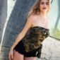 • Lyvia — Top drapé imprimé camouflage stretch