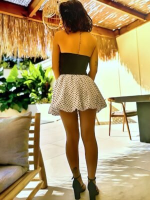 • Ensemble JUPE-SHORT 2 pièces : top bustier + Jupe-Short Dentelle taille haute avec short intégré