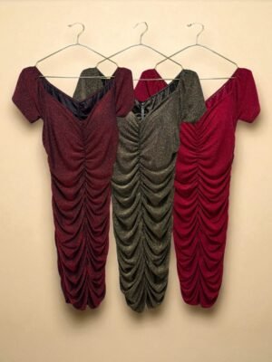 Robe Moulante Plissée Brillante à Col Bateau et Petites manches courtes
