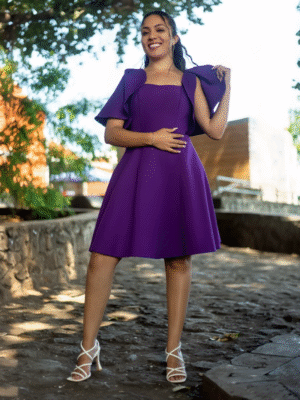 Robe Courte Évasée à Manches Fluides et Coquilles Intégrées