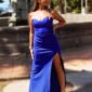 • Robe de soirée longue fourreau avec une grande fente et un noeud sur la bretelle