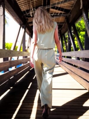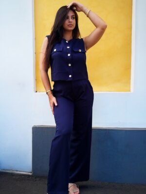 Ensemble Pantalon Maelisse – Gilet sans manches boutons dorés + pantalon fluide – disponible en plusieurs coloris